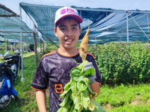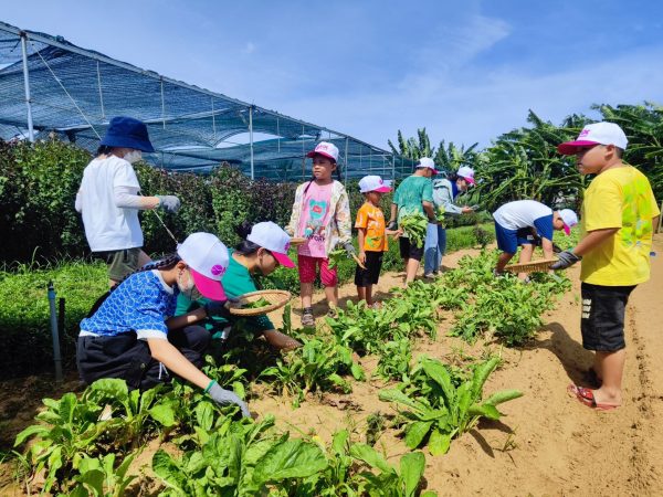 Trải nghiệm thu hoạch rau, chăm sóc vật nuôi.