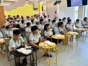 11h00: Các bé ăn trưa tại nhà hàng ( Mỗi bé 1 phần cơm đùi gà/ Sườn + 1 ly nước ngọt)